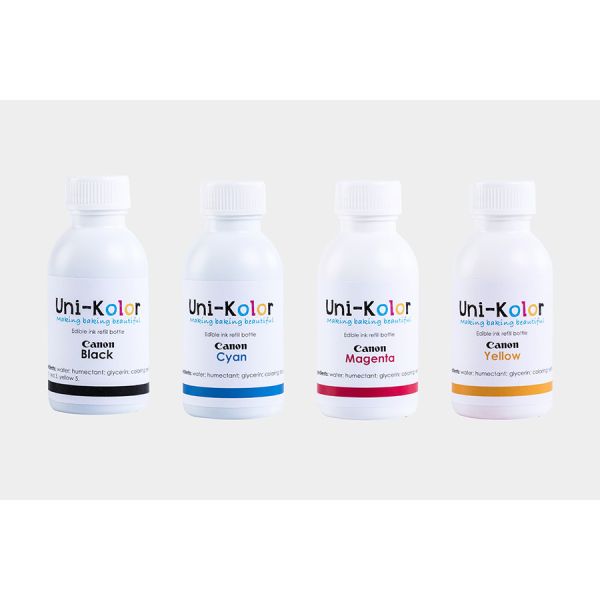 High quality edible ink helps you print bright and colorful edible images on icing sheet, wafer paper and chocolate transfer sheet. Our Canon edible ink is manufactured by Lesepidado in Italy who has 18 years’ dedication on edible ink. The ink is 100% food grade and Kosher approved.